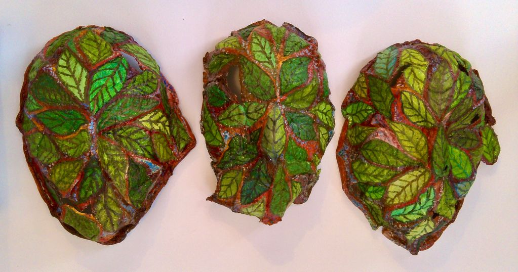 O.E. Fitzgerald, Emergent Relations, 2022-2023, moulded waste cardboard packing paper, gesso and oil paint, 3’ x 1’